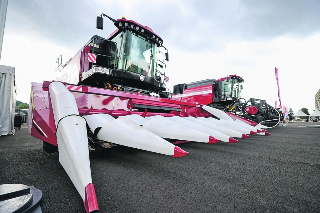 А вот перед нами зерноуборочной комбайн GS12 «Гомсельмаша» с впечатляющей нижней «челюстью»  – его производит в Брянске совместное предприятие «Брянсксельмаш».