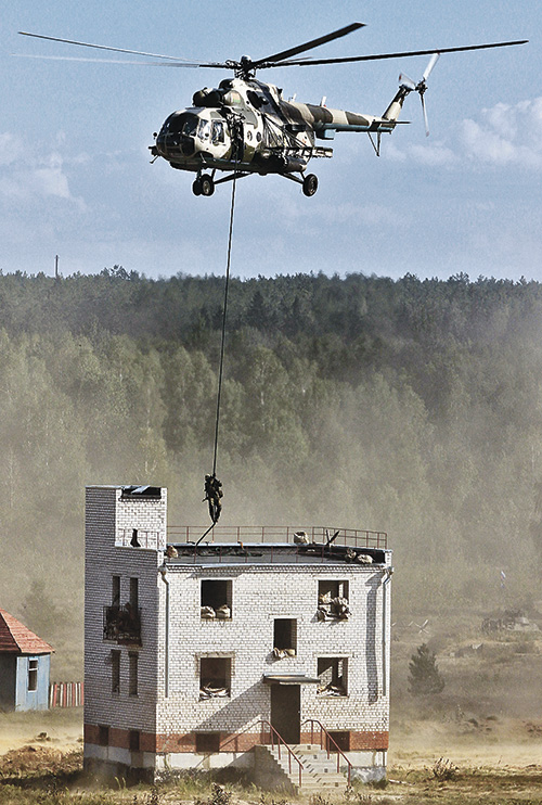 Из России на транспортном самолете специально перебросили четыре «терминатора» - вертолеты Ми-8АМТШ. Их отличает новая авионика, броня и такое же вооружение, как у штурмовых Ми-24. Кстати, два таких штурмовика тоже прибыли из Центрального военного округа РФ. Был и российский тактический самолет-разведчик Су-24 МР. Как известно, его название - от фамилии конструктора Павла Сухого, уроженца Беларуси.