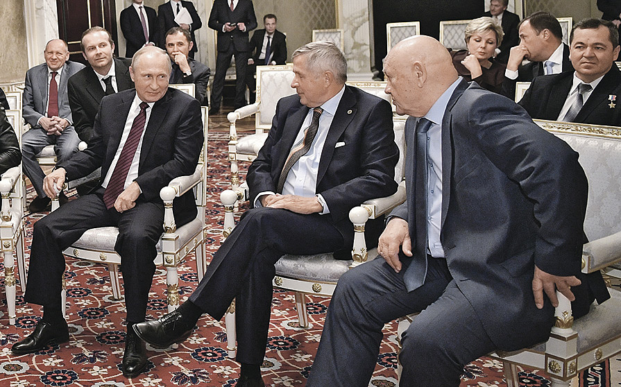 Вместе с Владимиром Путиным фильм "Салют-7" смотрели прототипы главных героев - космонавты Виктор Савиных и Владимир Джанибеков. Фото: Алексей Никольский/ ТАСС