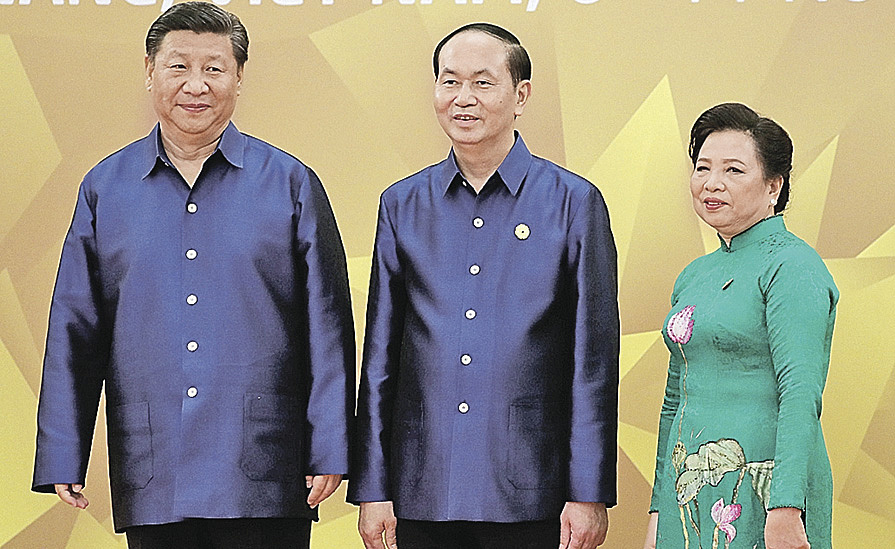 Председатель КНР Си Цзиньпин и президент Вьетнама Чан Дай Куанг с супругой Нгуен Тхи Хиен. Фото: Михаил Клименьев/ ТАСС