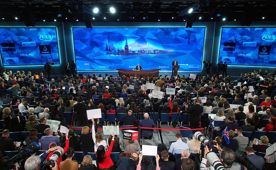 На пресс-конференцию президента России приехало рекордное число представителей СМИ – более 1,7 тысячи человек. Президент в течение нескольких часов отвечал на вопросы российских и зарубежных корреспондентов