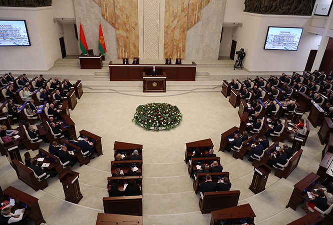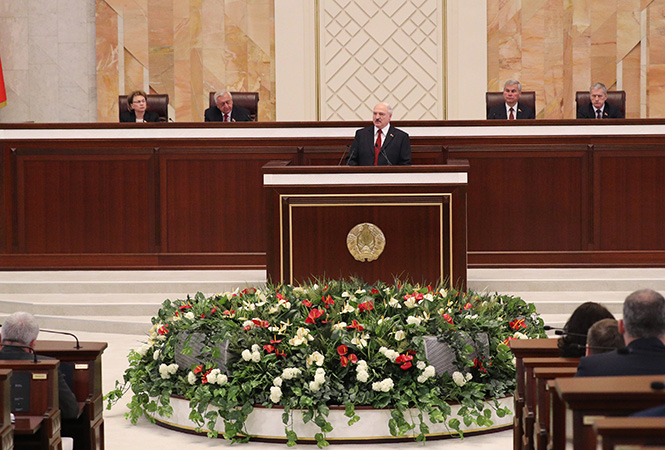 Александр Лукашенко выступает с Посланием к народу и парламенту.Фото: Максима Гучека/БЕЛТА