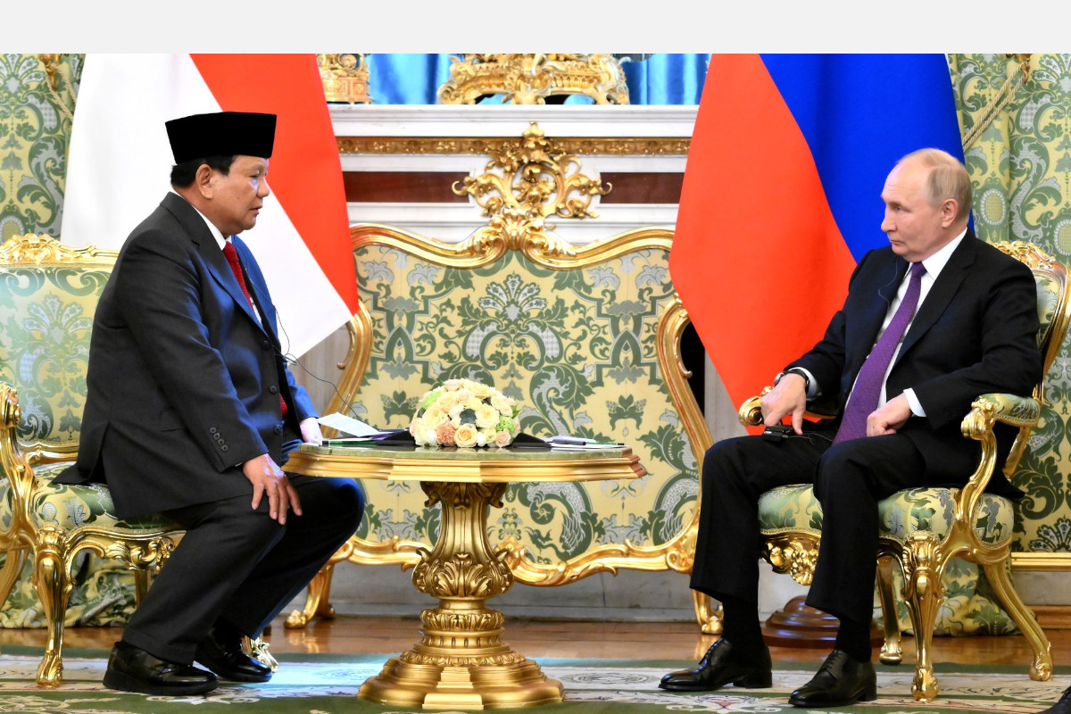 Владимир Путин с избранным Президентом Республики Индонезии, Министром обороны Республики Индонезии Прабово Субианто.