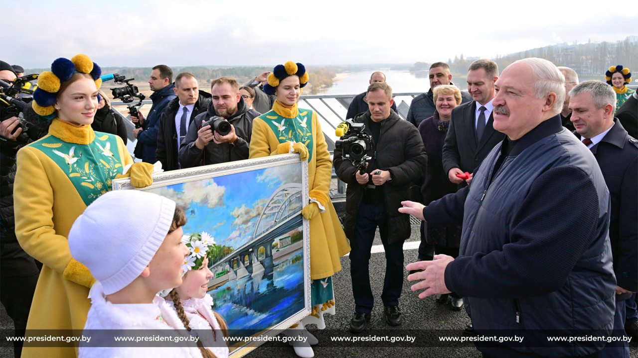 Накануне очередной годовщины Великого Октября, которая в РБ по-прежнему отмечается, Александр Лукашенко на церемонии в Мозыре торжественно перерезал красную ленточку и открыл движению по обновленному мосту через Припять
