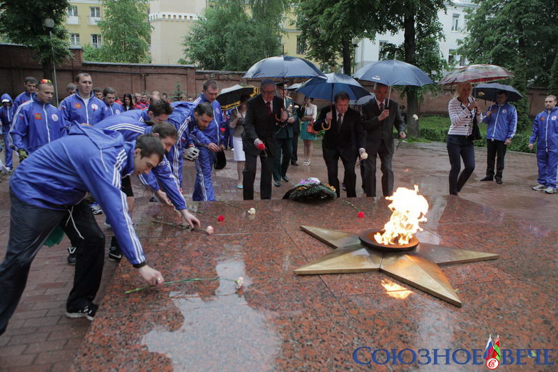 –  Это место является одним из священных символов братской дружбы между нашими народами. Дружбы, скрепленной кровью в борьбе с общим врагом, – сказал, открывая митинг, заместитель председателя Могилевского облисполкома Валерий Малашко. –Воинские части, прибывшие летом 1941-го сюда на линию фронта, были сформированы из местных жителей в Туле – городе, ставшем впоследствии побратимом Могилева. Поэтому дружба наших народов скреплена и совместно пролитой кровью во время Великой Отечественной войны. Время показало, что за прошедшие годы объединение двух славянских народов прошло испытание на прочность. И хотя не все трудности на пути строительства Союзного государства еще решены, мы уверены, что сможем их преодолеть, взяв друг у друга все самое лучшее. С этой целью и проводится велопробег Союзного государства, который позволяет молодежи не только сблизиться, но и воочию познакомиться с достопримечательностями стран-сестер.