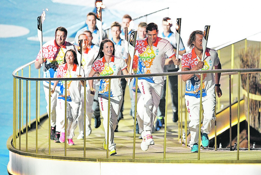 Пламя меткими огненными стрелами зажгла целая звездная команда белорусских чемпионов во главе с Дарьей Домрачевой. Фото: Владимир Астапович/РИА Новости.