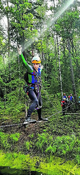 Насмотревшись, как ловко, без запинок ребята преодолевают все трудности, решаюсь и сам попробовать перебраться по натянутой через овраг веревке. Инструктор помог облачиться в паутину страховочных ремней, пристегнул стальным карабином к веревке и ободряюще похлопал по плечу: