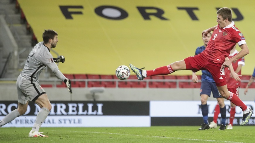 Александр Соболев атакует ворота словаков. ФОТО: РФС