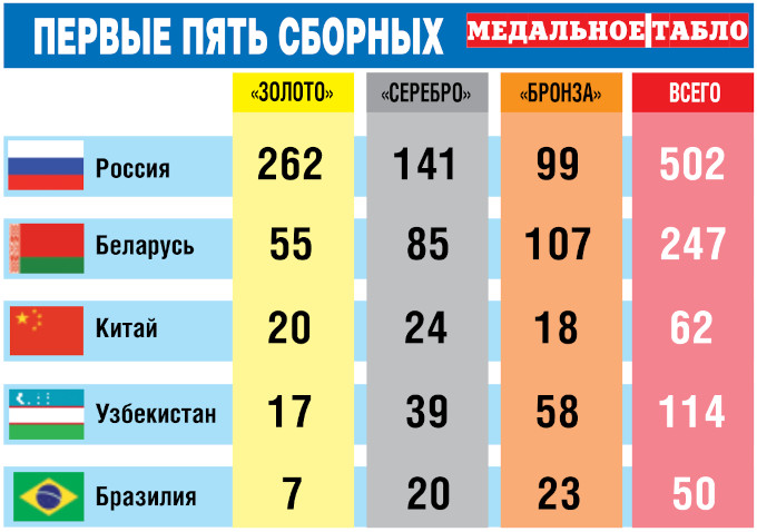 Игры БРИКС превратились в медальный бенефис сборных России и Беларуси. Никто из звезд, включенных в заявку, не отказался. Отсюда и потрясающий общекомандный итог.