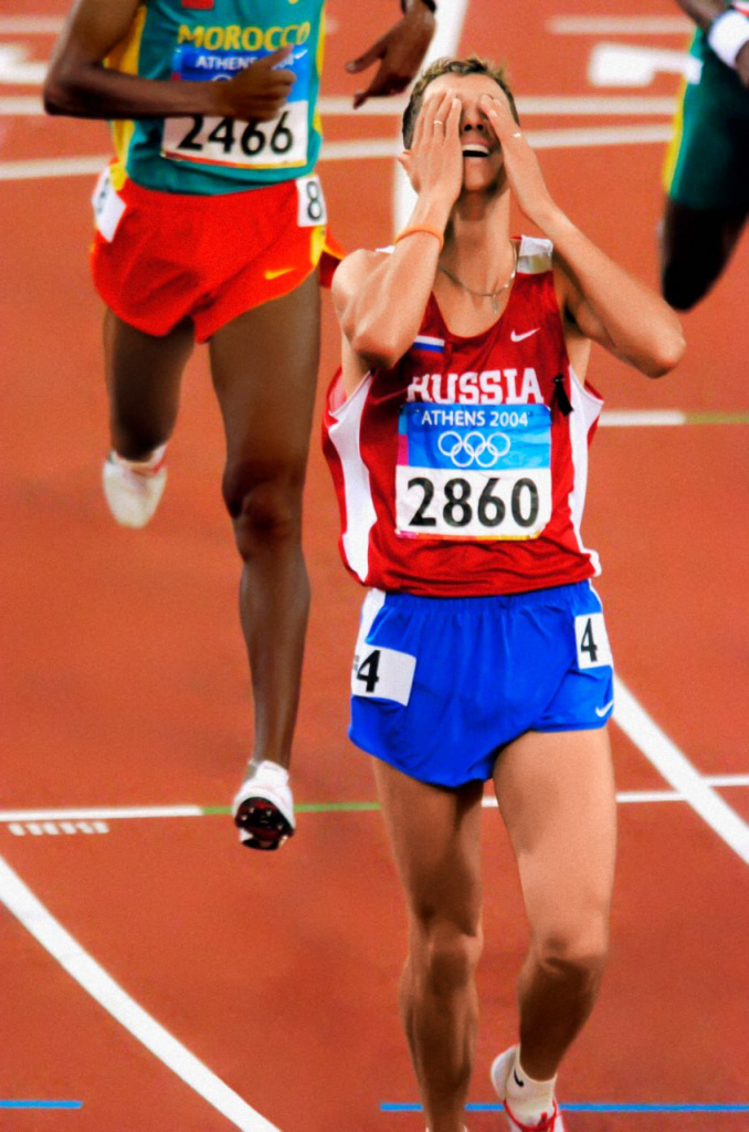 Финальный забег в Афинах-2004 можно пересматривать до бесконечности. Это - шедевр. Тактические шахматы на дорожке. Риск на грани провала. Почти всю дистанцию он бежал в хвосте группы. И на последнем вираже совершил невероятный рывок, причем по внешней, более длинной дорожке. Обошел всех соперников и на финише победно взмахнул руками. А затем рухнул на дорожку в слезах счастья. Ликовала вся Россия - от Калининграда до Камчатки. Его победа сродни полету Гагарина. Тем более что и родились они в один день. Оба покорили космос. Каждый - по-своему.