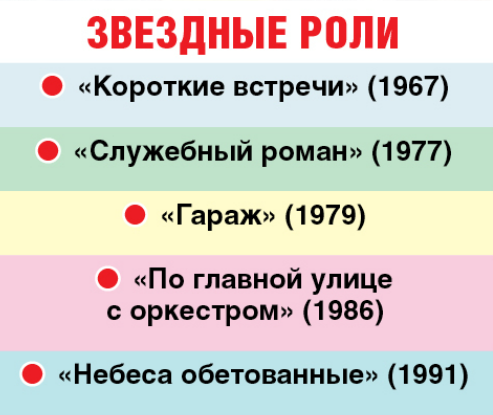 - В начале карьеры не была обласкана вниманием. Вкладывала в работу всю душу, но признания не получала. Когда любимый «Служебный роман» выдвинули на Государственную премию РСФСР, меня вычеркнули из списка.