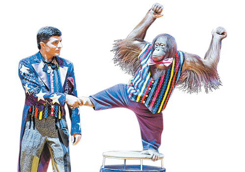 Але-оп! Дрессированная обезьяна делает такие выкрутасы, что в голове не укладывается.