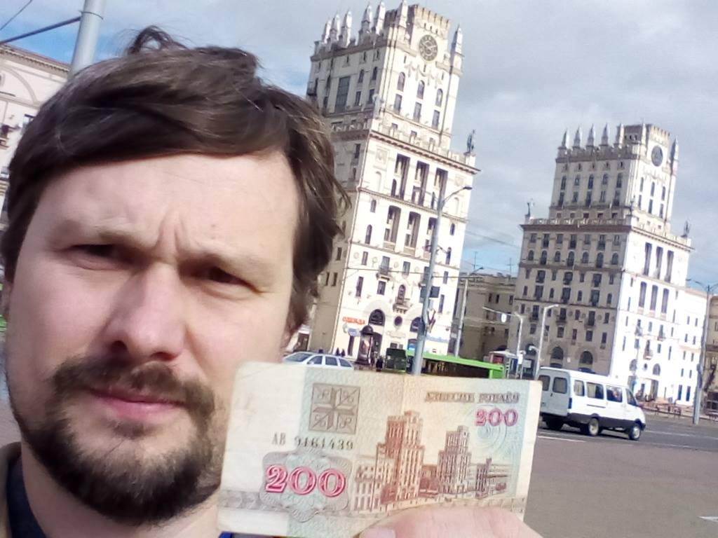 Вариант для щеголей – селфи с 200 рублями образца 1992 года на фоне комплекса зданий «Ворота Минска» у железнодорожного вокзала. Купюра выведена из оборота в 2001 году и обычно оценивается в 5 евро.