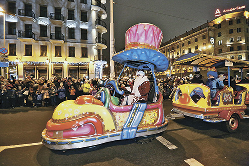В Минске то и дело устраивают сказочные представления. 24 декабря с площади Независимости до площади Свободы прошли восемьсот Дедов Морозов и Снегурочек. Фото: БЕЛТА