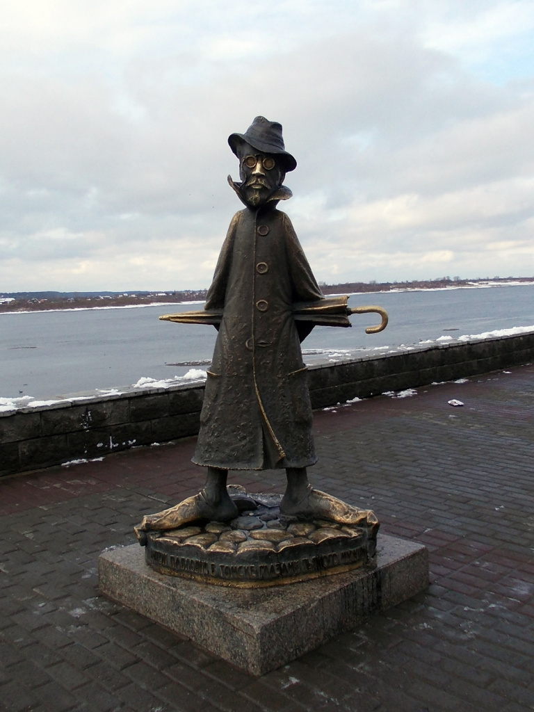 Монументальная визитка города - ироничный образ Чехова на набережной Томи. В длинном, как перевернутая рюмка, пальто, шляпе всмятку, босиком, с гротескных размеров ногами - классик не похож сам на себя. Надпись на постаменте гласит: