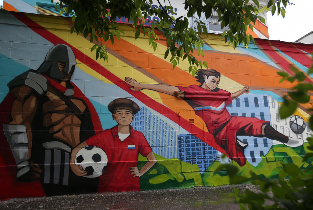 3. Уже не за горами чемпионат мира по футболу 2018 года – не удивительно, что в Москве уже появились граффити со спортивной тематикой. К примеру, рядом со столичным стадионом «Открытие Арена» этот рисунок появился благодаря местным жителям. Как напоминание о здоровом образе жизни.