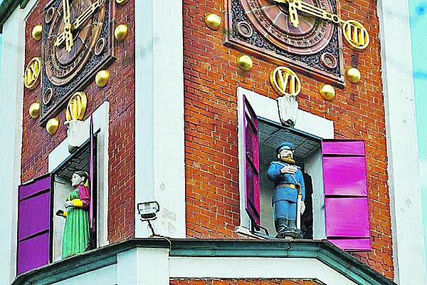 Дважды в день под часами собирается толпа, чтобы увидеть шоу. Фото: Сергей Кутимский.