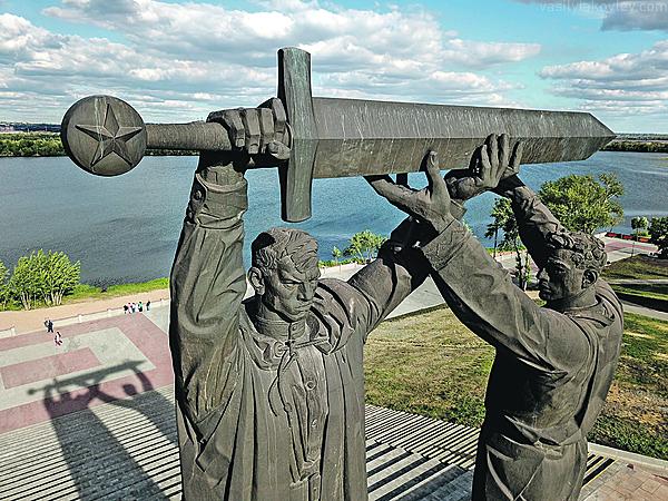 Трудовому подвигу посвятили грандиозный памятник «Тыл - фронту». Далеко не все знают, что монумент - часть самого внушительного скульптурного триптиха в мире. Этими фигурами скульптор Лев Головницкий завершил работу над замыслом своего учителя Евгения Вучетича после его смерти. По задумке, тот самый меч, который магнитогорский рабочий вручает красноармейцу, заносит над врагом «Родина-мать» на Мамаевом кургане в Волгограде. Его же опускает, попирая свастику, «Воин-освободитель» в Трептов-парке в Берлине. Есть и еще одна ипостась этого клинка - мирная. У здания ООН в Нью-Йорке красуется монумент «Перекуем мечи на орала».