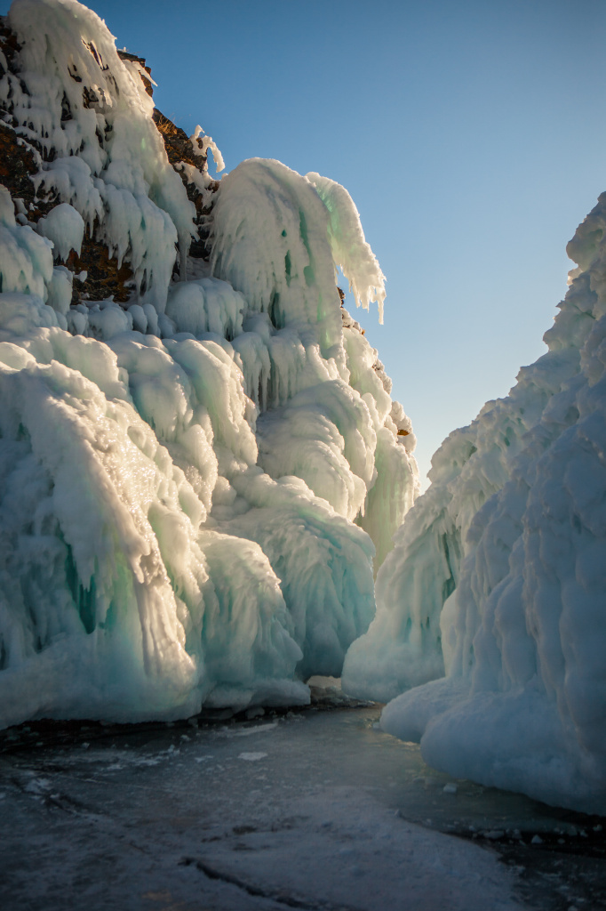 Гуляя по поверхности озера, не забывайте поднимать иногда голову. Обрывистые берега Ольхона с наступлением холодов тоже становятся сказочно красивы. В начале зимы бьющиеся о скалы волны замерзают буквально на лету. Местные называют это - наплески. Отвесные стены превращаются в крепости с частоколом изогнутых под невероятным углом сосулек. А гроты становятся ледяными пещерами с колоннами и хрустальными «тронами», которым позавидовала бы сама Снежная королева.