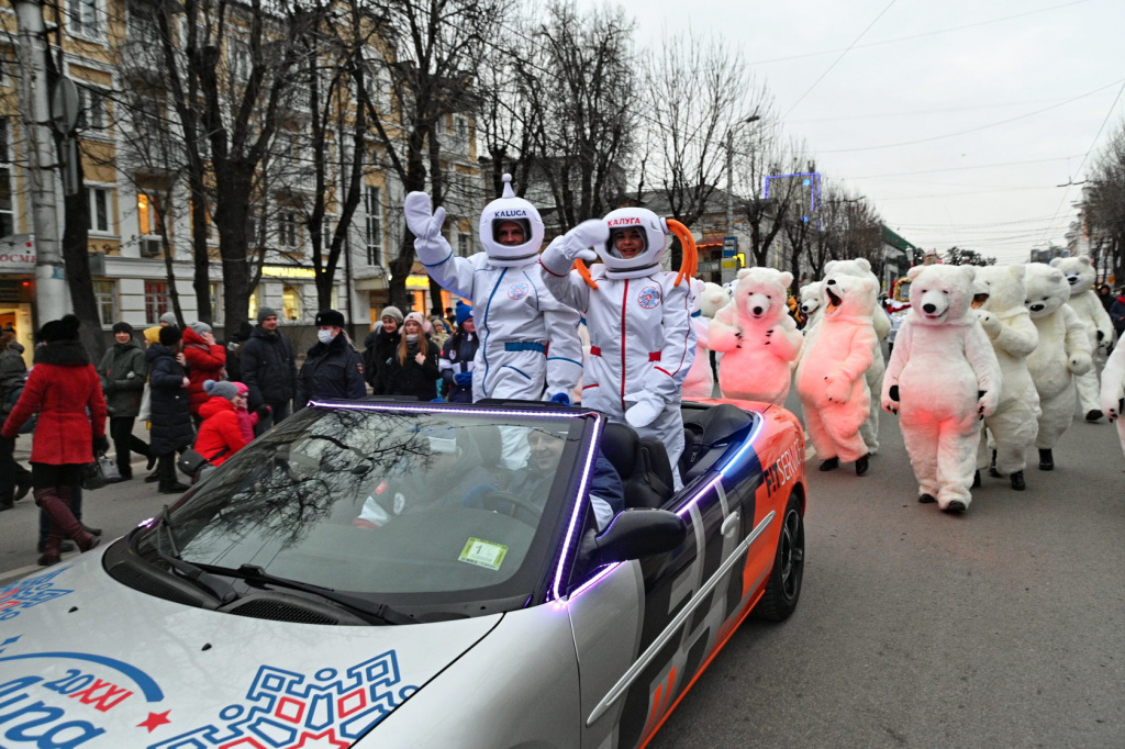 В апреле следующего года мы будем отмечать 60 лет со дня первого полета человека в космос. По этому случаю Калугу на праздники оформили в стиле ретрофутуризма. Древний город, первое упоминание о котором относится к 1371 году, сегодня залит неоновыми огнями, украшен снежинками со спутниками и елками со светодиодными экранами. Гуляя по древним улочкам, вы невольно будете узнавать о космических достижениях. А в сквере Чижевского уже приземлилась летающая тарелка «Станция 1371». До Рождества здесь можно будет встретиться с инопланетянами, выиграть космические подарки и насладиться фееричным шоу. В городском парке 2 января всех ждут на конкурс «Чудо-сани». Дело за малым - необычно украсить самый популярный вид детского зимнего транспорта и отправиться в путь по заснеженным дорожкам. На следующий день здесь будут щеголять «модели» в костюмах Снеговика.