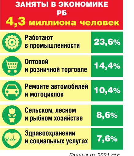 - Особенность рынка труда России и Беларуси - высокая занятость. За последние пять лет ее уровень составлял порядка шестидесяти процентов по России и 67 процентов по Беларуси. В странах очень низкий уровень безработицы. По методике МОТ он не превышает все эти годы шести процентов, то есть находится на уровне естественной безработицы и является самым маленьким в Европе. Россия и Беларусь в сфере труда выступают в качестве доноров и реципиентов трудовых ресурсов. Число граждан Беларуси, выезжающих в Россию, гораздо больше, чем выезжающих в другие страны. В 2021 году на миграционный учет в РФ поставили 466 тысяч граждан Беларуси, в том числе 174,5 тысячи с целью работы. Это около четырех процентов от занятых в Беларуси.