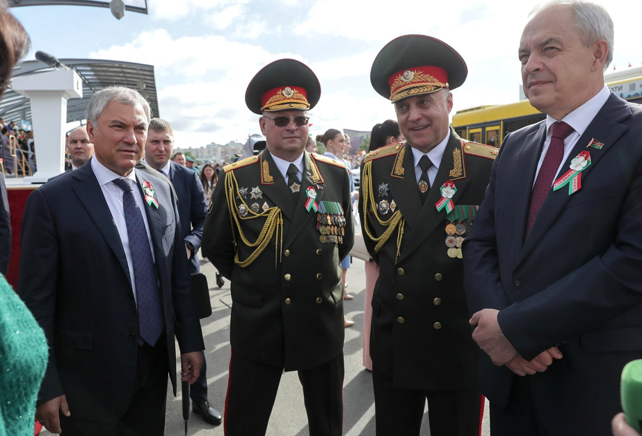 Председатель Госдумы посетил военный парад в Минске. Побывал на торжественном собрании и концерте мастеров искусств «Путь к независимости». Встретился со спикером Палаты представителей Нацсобрания, Первым заместителем Председателя Парламентского Собрания Игорем Сергеенко. Говорили о развитии межпарламентского сотрудничества и сохранении исторической памяти.