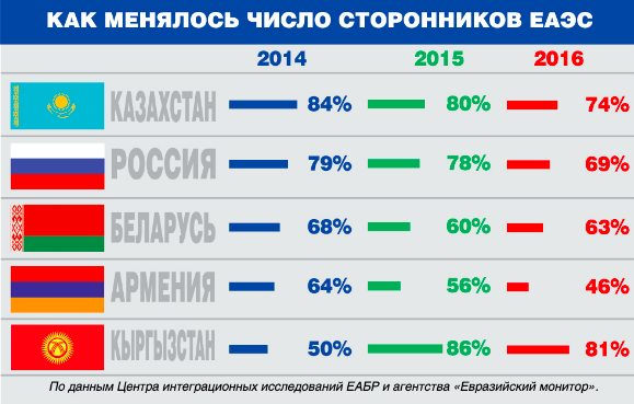 В Беларуси выявлен незначительный рост показателя - на три процента за год. В остальных же странах союза отмечено снижение числа сторонников объединения от пяти до десяти процентов. Но, как отмечают социологи, это произошло не за счет роста числа противников идеи, а за счет того, что стало больше тех, кто относится к нему безразлично.