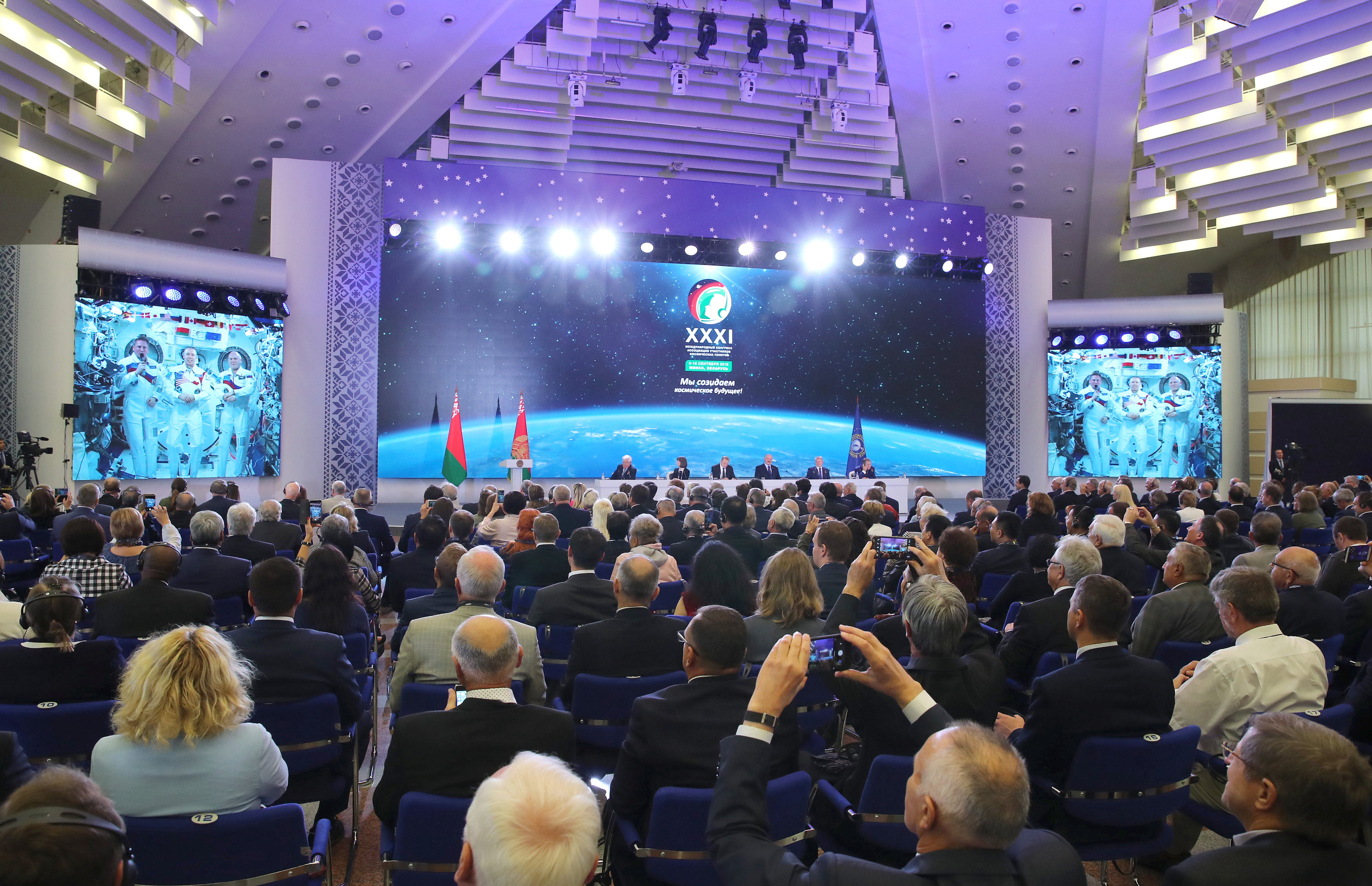 На фото: на церемонии открытия XXXI Международного конгресса Ассоциации участников космических полетов. Фото Максима Гучека, БЕЛТА.