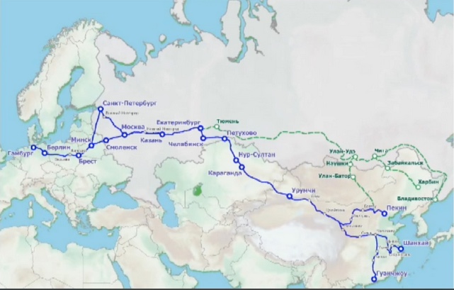 Магистраль «Евразия» будет брать начало в Гамбурге , а заканчиваться в трех китайских городах - Пекине, Шанхае и Гуанчжоу.