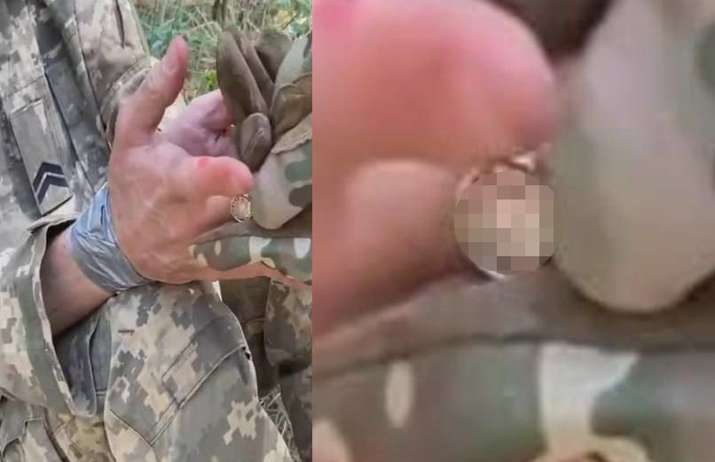 В сеть попали фото бойца ВСУ с перстнем со свастикой