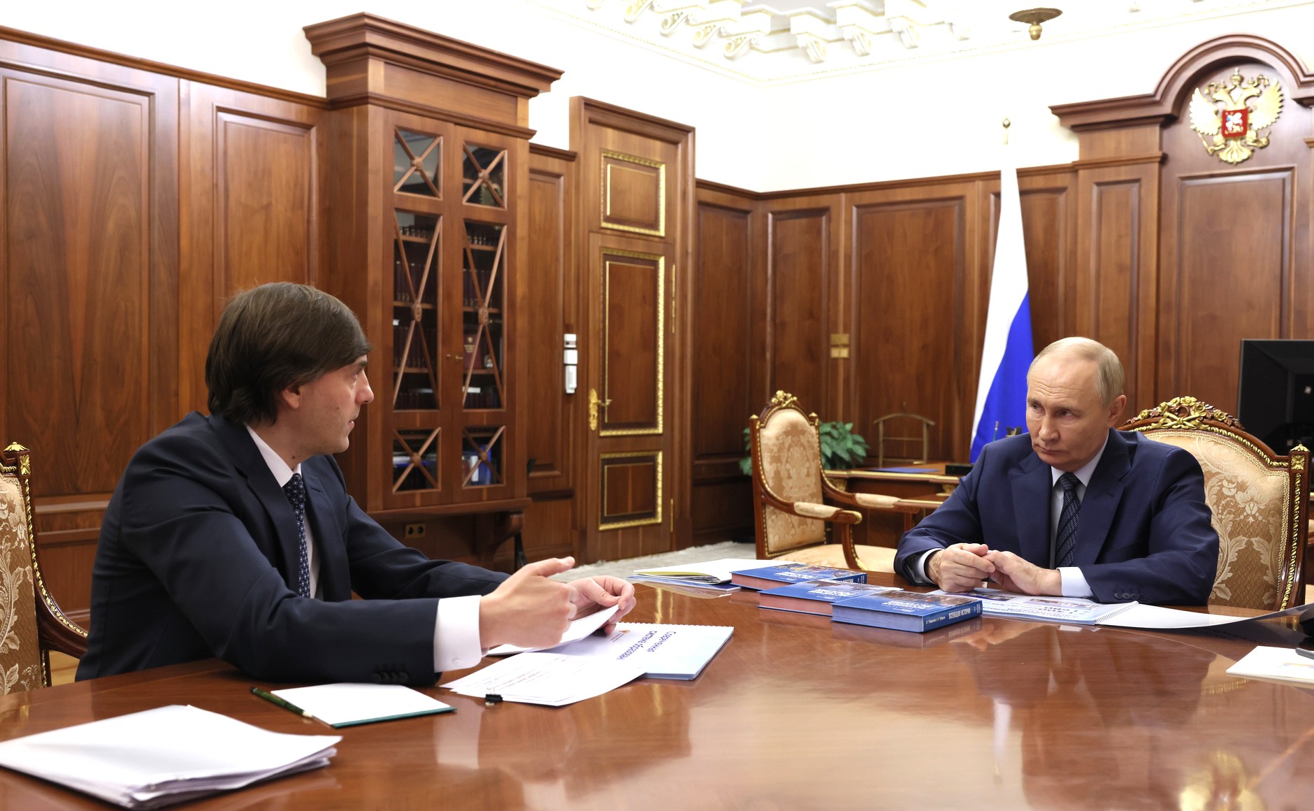 Президент России Владимир Путин с министром просвещения Сергеем Кравцовым