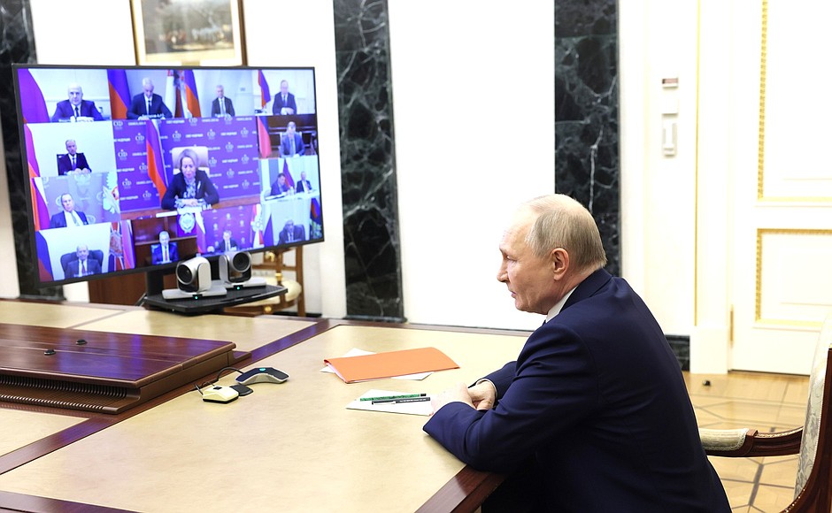 Президент России Владимир Путин 7 марта в режиме видеоконференцсвязи провёл оперативное совещание с постоянными членами Совета Безопасности
