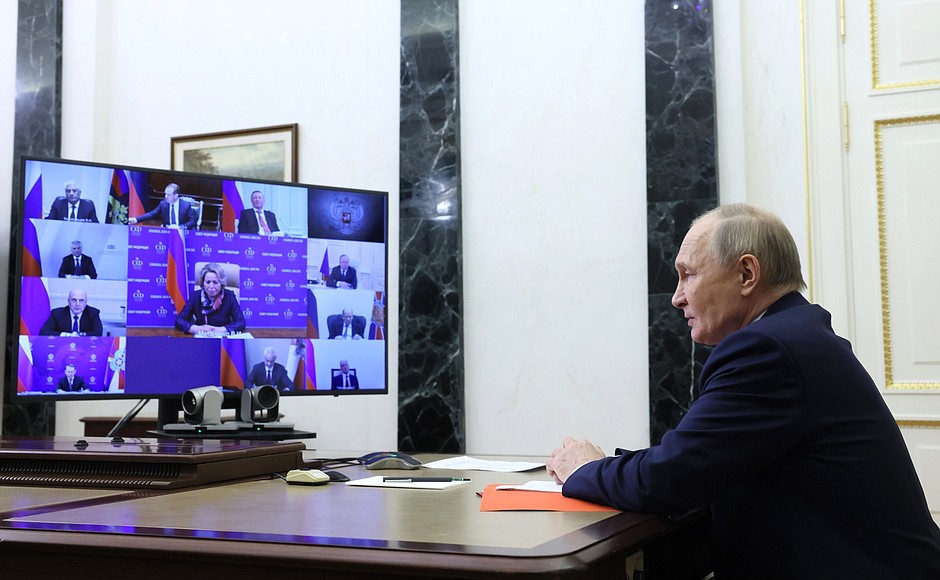 Президент России Владимир Путин провел совещание с постоянными членами Совета Безопасности в режиме видеоконференции