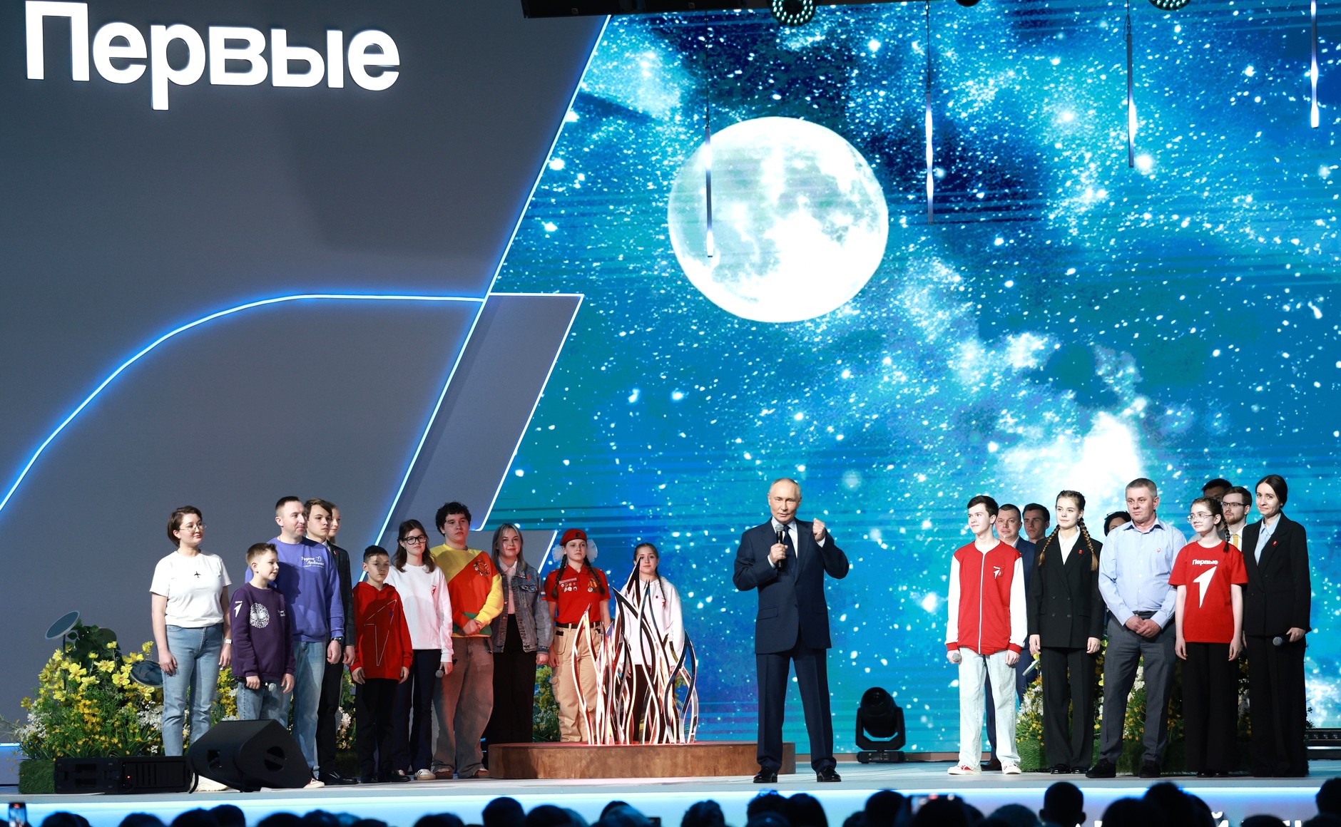 Президент России Владимир Путин 26 марта выступил на церемонии открытия IV съезда Общероссийского общественно-государственного движения детей и молодёжи «Движение первых»