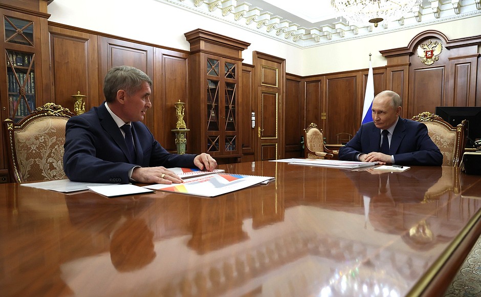 Президент России Владимир Путин 26 марта встретился с главой Чувашской Республики Олегом Николаевым в Кремле