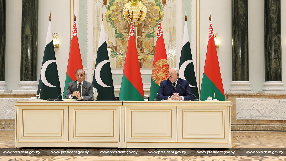 В присутствии глав государств, Александра Лукашенко и Шахбаза Шарифа, прошла церемония обмена подписанными международными соглашениями и другими официальными документами.
