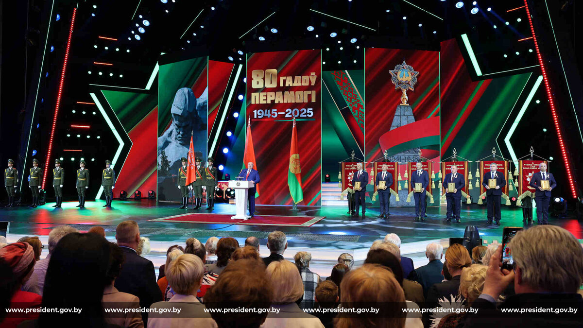 Президент Беларуси Александр Лукашенко в преддверии Дня Победы вчера в Минске во Дворце Республики принял участие в торжественном собрании, посвященном 80-летию Победы в ВОВ