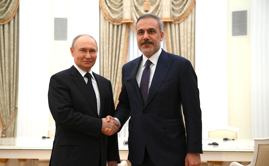 Президент России Владимир Путин в понедельник принял в Кремле Министра иностранных дел Турции Хакана Фидана