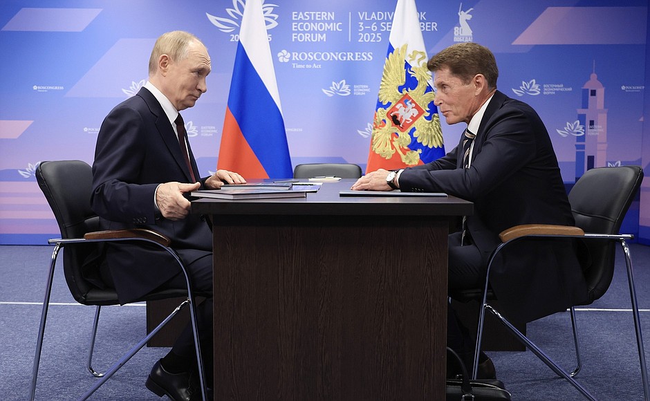Президент России Владимир Путин обсудил с губернатором Приморского края Олегом Кожемяко итоги ВЭФ и перспективы развития региона.