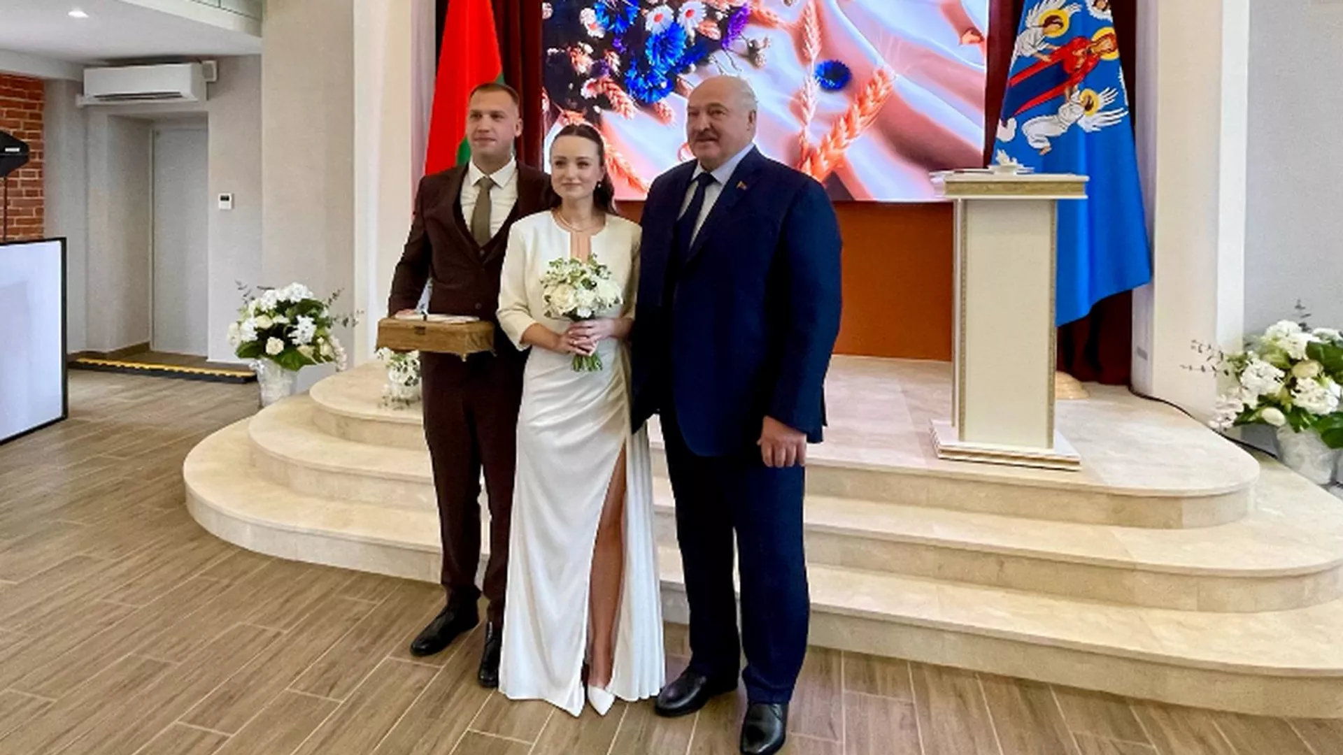 Александр Лукашенко побывал на свадьбе и вручил молодожёнам ключи от квартиры