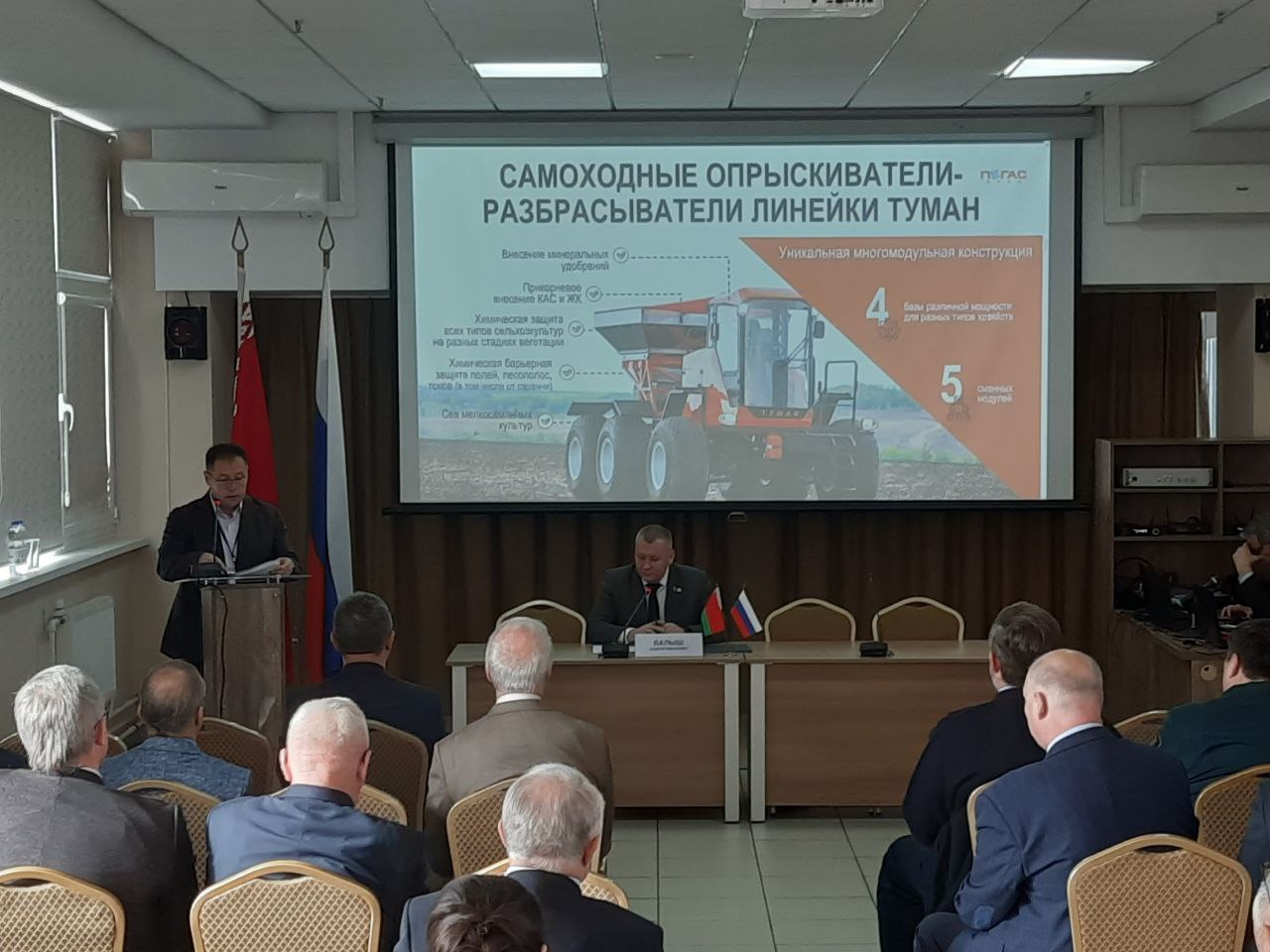 В рамках второго дня постоянно действующего семинара при Парламентском Собрании Союза Беларуси и России по вопросам строительства Союзного государства на тему «Рациональное использование земельных ресурсов как фактор продовольственной безопасности Союзного государства» руководитель отдела экспортных продаж ООО «Пегас-агро» (Самарская область, Россия) Алексей Сверчков представил новый революционный самоходный опрыскиватель «Туман-4».