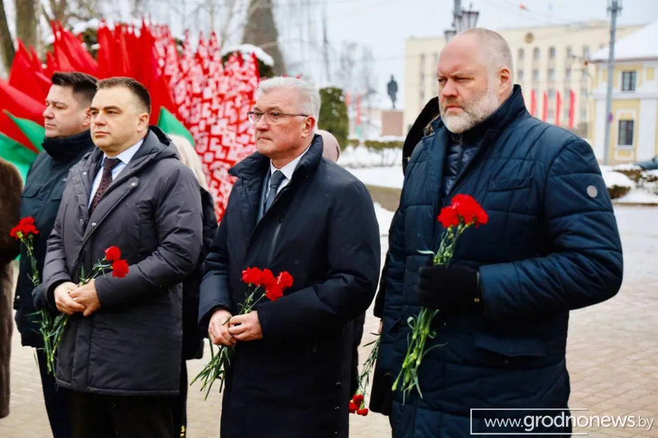Заместитель госсекретаря Союзного государства Алексей Казаков и делегация Парламентского собрания Союза Беларуси и России в ходе рабочего визита в Гродно возложили цветы к братской могиле в парке Жилибера и почтили память павших героев.