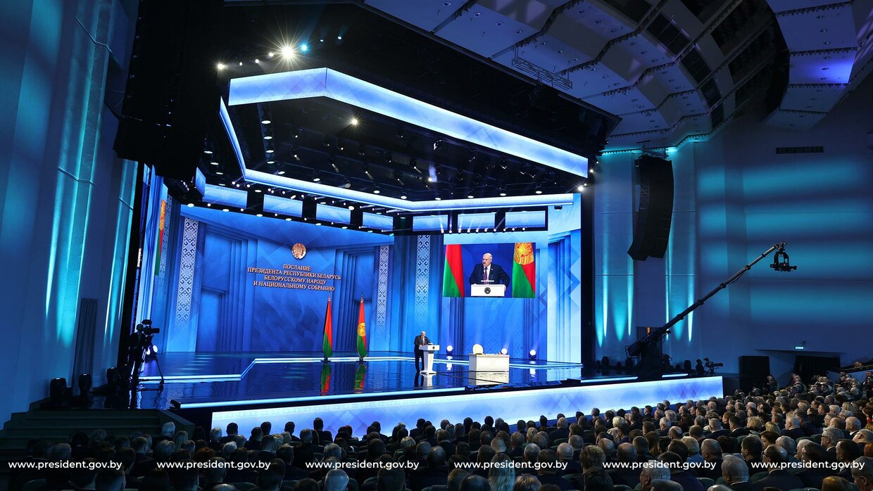 ... но меня не все услышали. - отметил президент. - Мы видим на своем примере, что спокойно жить нам не дадут. В эти минуты президент выступает с Посланием к народу и парламенту во Дворце Республики в Минске. Общее число приглашенных гостей — 2500. Послание будет идти в прямом эфире, а ...