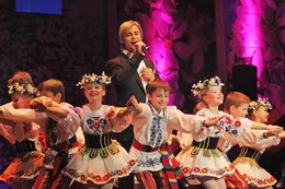 ... Государственном академическом Малом театре в Москве царило по-весеннему радостное настроение. На фото: победитель «Славянского базара» в 2009 году россиянин Дмитрий Даниленко и детский хореографический ансамбль «Ровесник» из Беларуси поют и танцуют для участников праздничного концерта....