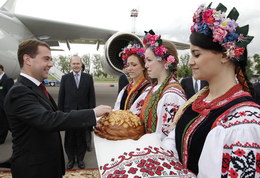 ... мая Президент России Дмитрий Медведев находился в Киеве с двухдневным официальным визитом. В аэропорту «Борисполь» его ждали хлеб-соль. Ливень, которым Киев встретил главу Российского государства, Д. Медведев назвал знаковым. «Надеюсь, этот дождь смоет негатив, созданный на ...