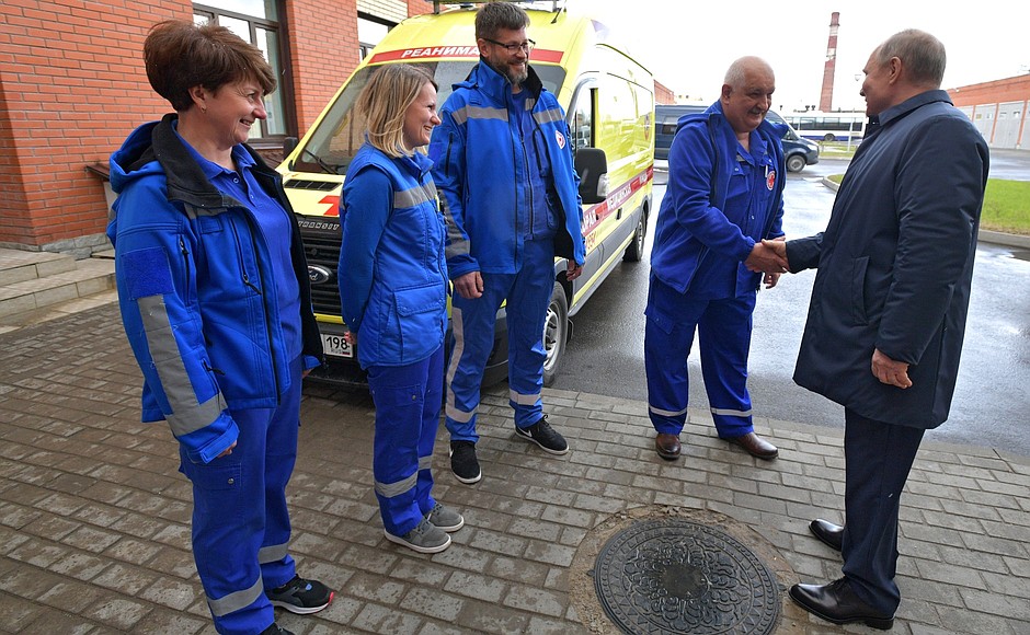 В России отмечают День работника скорой помощи Глава государства посетил станцию скорой медицинской помощи №4 в Пушкине, сообщается на сайте Кремля. Президент поздравил сотрудников станции с профессиональным праздником, установленным в прошлом году по его предложению. Владимир Путин также ознакомился с оснащением станции, осмотрел диспетчерскую, пункт хранения средств индивидуальной защиты, учебный класс, конференц-зал. - Вас, ваших коллег ждут как ангелов. Главная цель — спасти человека, нет...