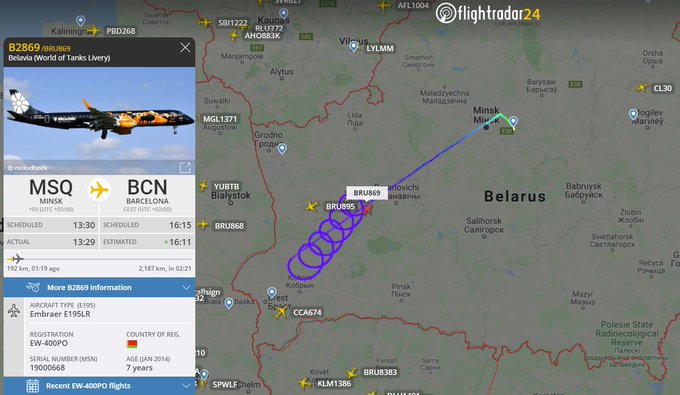 У борта могли возникнуть сложности при пересечении воздушного пространства Франции Рейс авиакомпании «Белавиа» Минск - Барселона не смог покинуть воздушное пространство Беларуси и вынужден был кружить над Брестом. Самолет белорусской авиакомпании не вошел ...