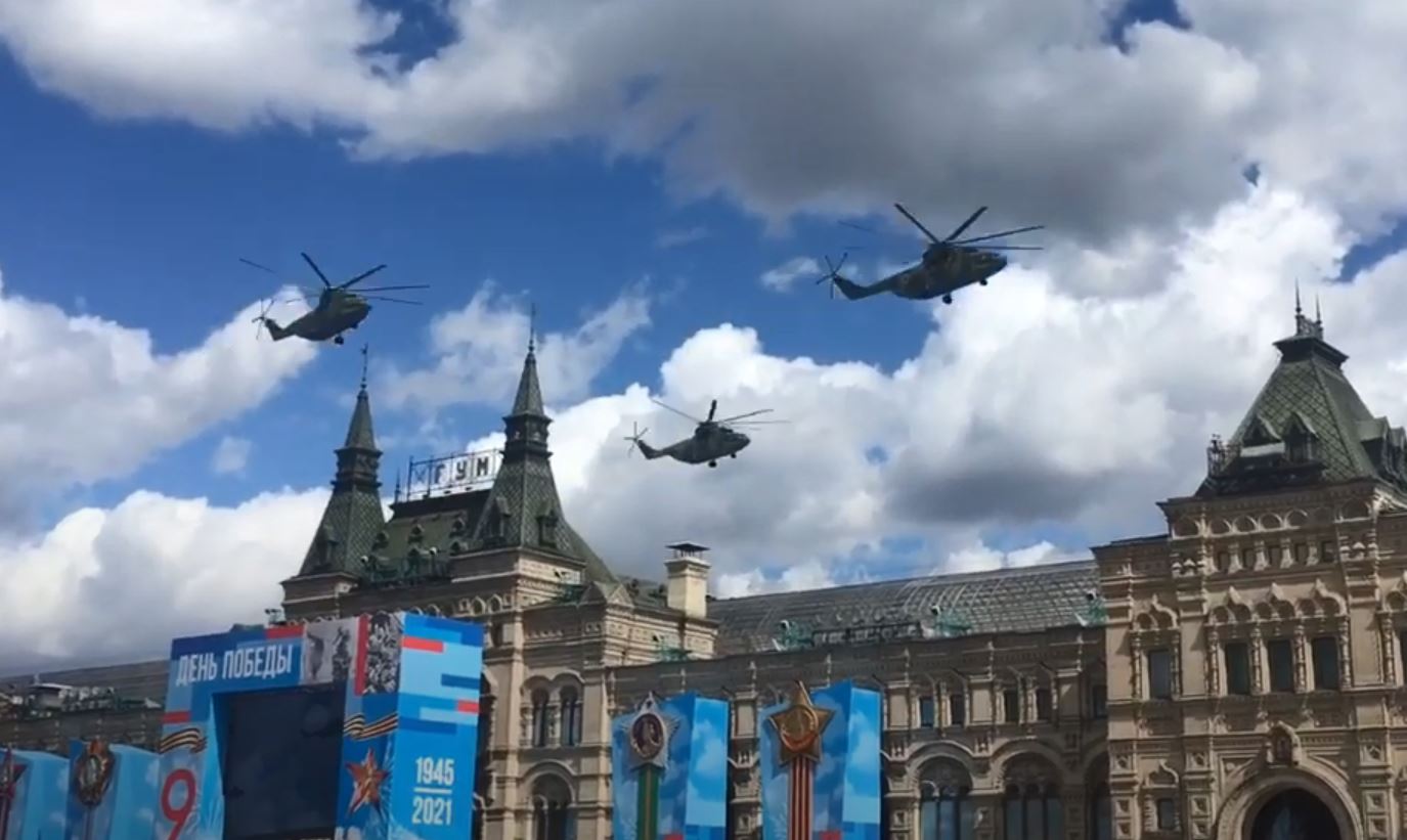 ... система С-400 «Триумф», пусковые установки ракетного комплекса «Ярс»... А в финале над Красной площадью пролетел известный всему миру «кýбинский бриллиант» – ромб из самолётов Су-30СМ и МиГ-29 пилотажных групп «Русские витязи» и «Стрижи». А затем шесть штурмовиков Су-25 раскрасили небо ...